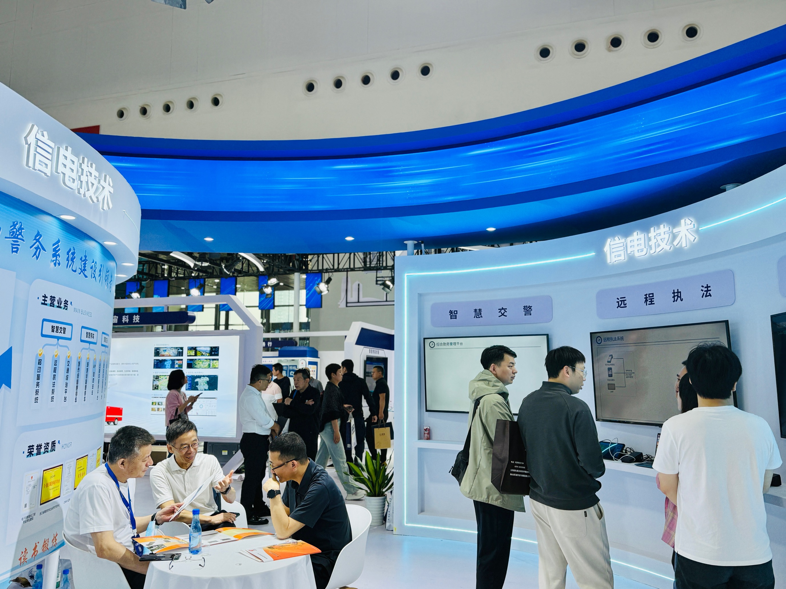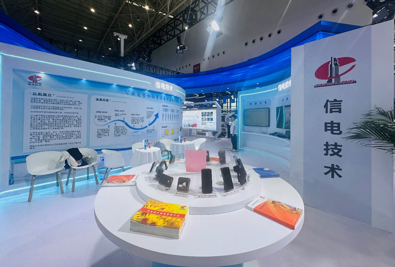 服务的引领者,集中展示了第六/第七代信电自主知识产权智能警务终端及附加执法记录仪、蓝牙打印机等产品。